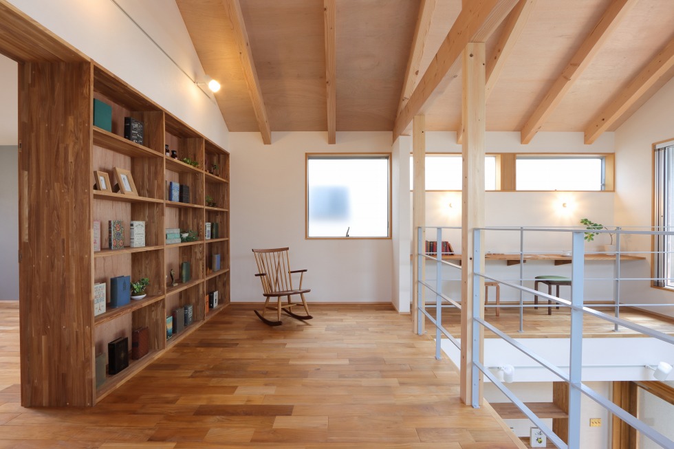 小上がりの段差を活かして床下を大容量の収納にすれば、散らかりがちなリビングもすっきり片付きます。