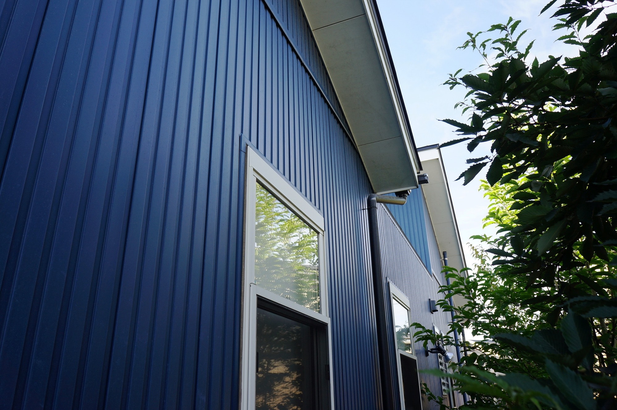 シャープでモダンな印象を与える金属製の外壁材。